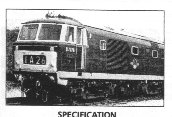 With an overall weight of 77 tonnes, it had a maximum speed of 90 mph. Maximum TE was 46600 lbf with a Continuous TE at 12.5 mph of 33950 lbf. It provided a steam powered train heating system.