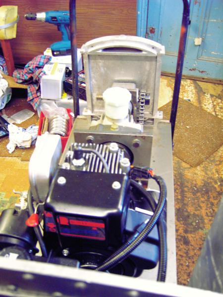 The 7 1/4”- 7 1/2” version has three drive options; a 4 hp single cylinder push button start petrol engine driving either a hydrostatic transmission through a double output Tee box, or an alternator powering 4 or 6 DC axle mounted motors.